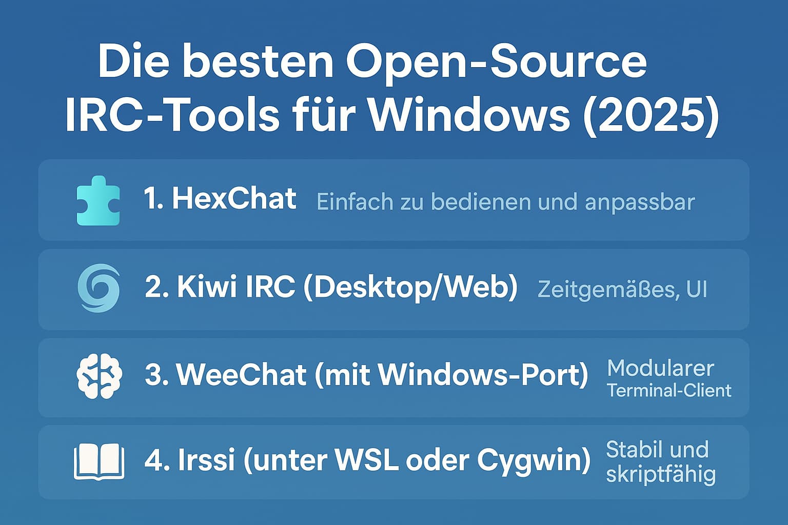 Ob du nostalgische Chats liebst, in Entwickler-Communities unterwegs bist oder einfach ein schlankes Kommunikationsmittel suchst – IRC (Internet Relay Chat) lebt auch 2025 weiter. Besonders im Open-Source-Bereich gibt es einige hervorragende Clients für Windows, die regelmäßig gepflegt werden. Hier stelle ich dir die besten vor: